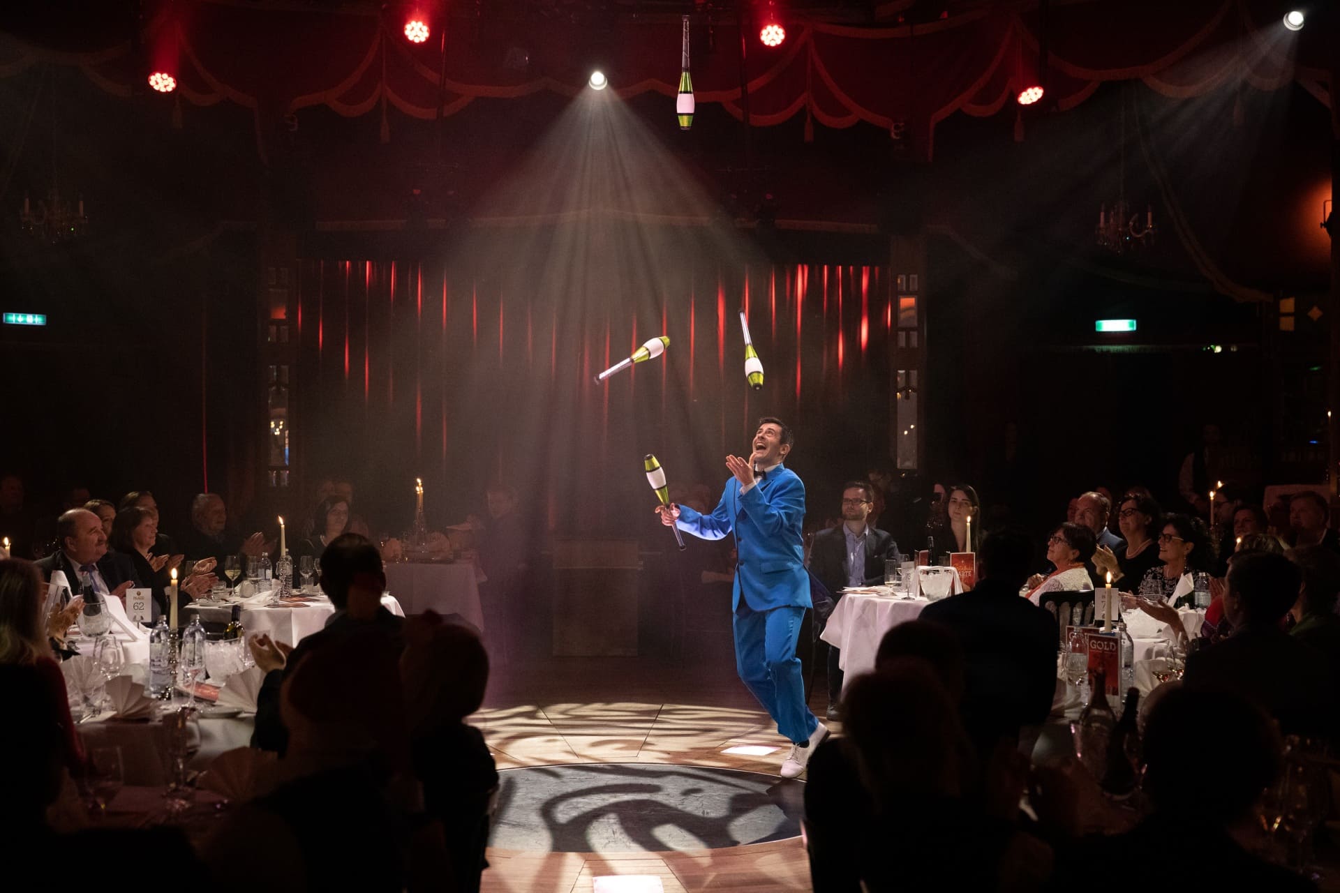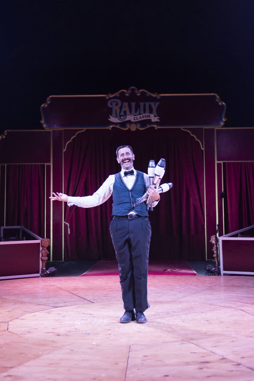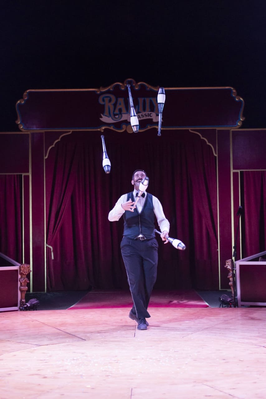Con su número Malabailes 2, Ramiro combina con espontánea comicidad y gran musicalidad la frescura del swing de los años 30 con el virtuosismo de los malabares clásicos con mazas. El resultado es un número elegante, divertido y lleno de energía.