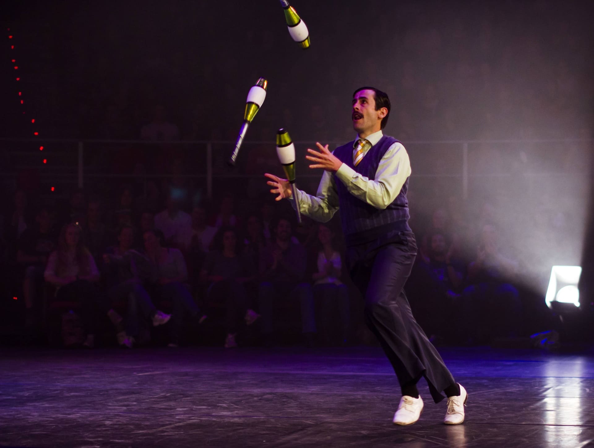 A lo largo de más de una década se ha presentado en Europa, Brasil y Japón. Su esencia —la fusión entre el virtuosismo del malabarismo con mazas y la frescura del swing— se ha mantenido, aunque con el tiempo he realizado adaptaciones musicales y coreográficas para hacerlo funcionar en distintos espacios y contextos. Esa flexibilidad me ha permitido también colaborar con formaciones en directo como La Barcelona Jazz Orquestra, Shakin’ All o Boozan Dukes.